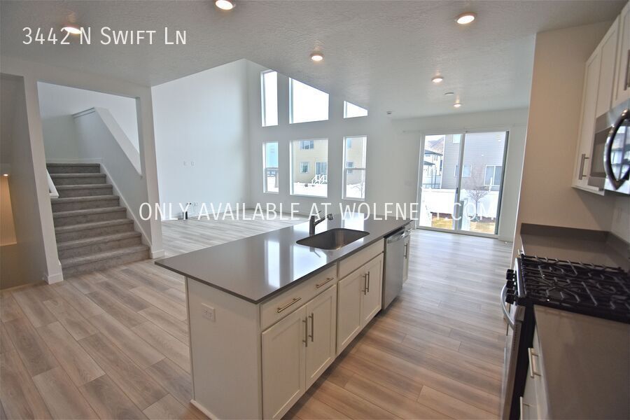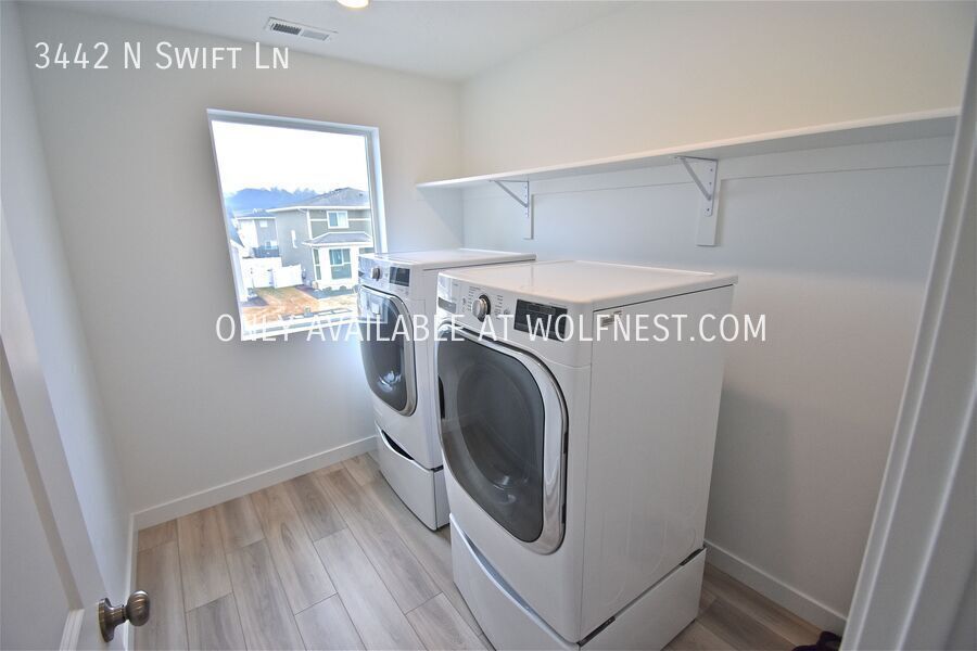 This gorgeous home features an open floor plan and is conveniently located minutes from Eagle Mountain Blvd, Eagle Point Park, Mountain Trails Elementary & many shops and restaurants! It offers 4 bedrooms and 2.5 bathrooms spread over 3,492 sq. ft. As you walk in, you'll find an open kitchen, dining and living area with a half bathroom. If you head upstairs, you'll find three bedrooms, a full bathroom, a laundry room as well as the master bedroom and bathroom. The basement is unfinished with plenty of room for storage! Additional amenities include stainless steel appliances, LVP flooring, gas stove, washer and dryer, fenced backyard & 2 car garage!