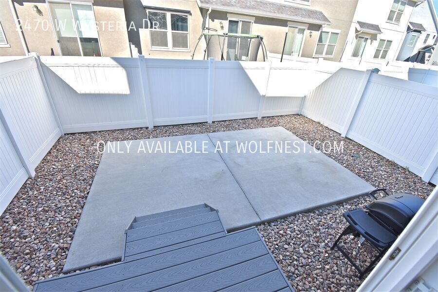 This gorgeous townhome features an open floor plan and is conveniently located minutes from Maple Mountain High School, I-15, Hwy 6, Legacy Farms Park & many shops and restaurants! It offers 3 bedrooms and 2.5 bathrooms spread over 2,386 sq. ft. As you walk in, you'll find an open kitchen, dining and living area with a half bathroom. If you head upstairs, you'll find two bedrooms, a full bathroom, a laundry room as well the master bedroom and bathroom with a walk-in closet. Downstairs is unfinished with plenty of room for storage. Additional amenities include stainless steel appliances, LVP flooring, central air, fenced back patio area & 2 car garage!