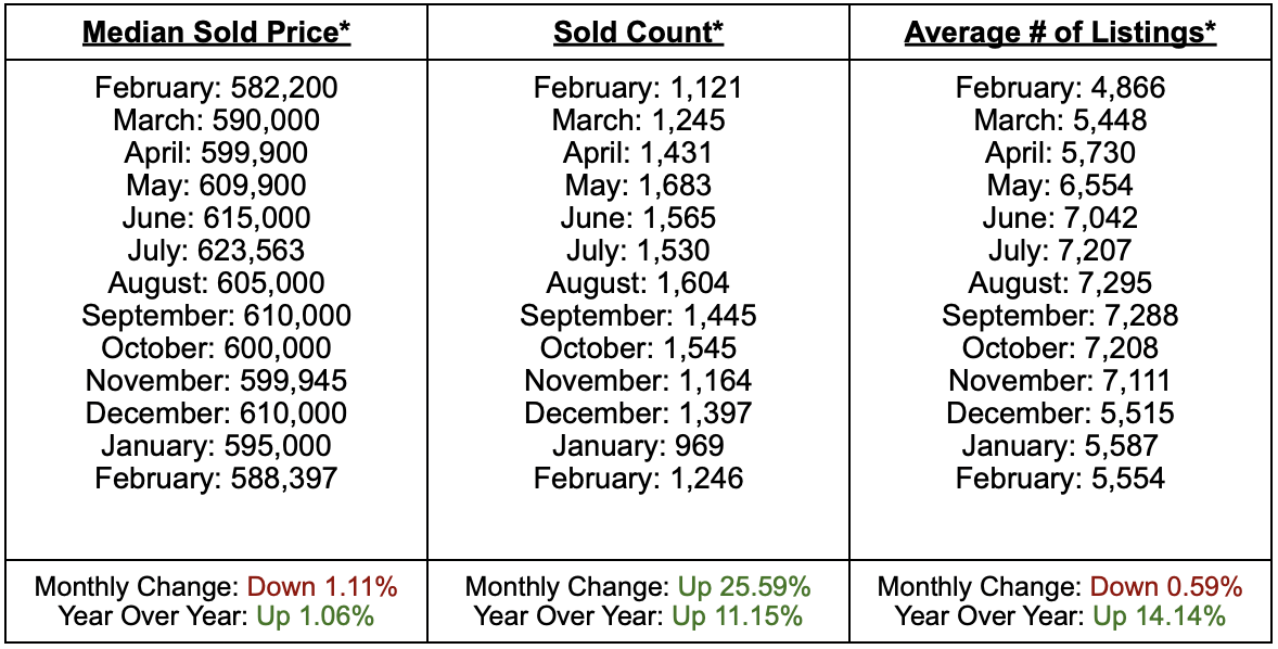 Utah’s housing market continued to show steady activity in February, with a mix of small price adjustments and growing inventory. The median sold price came in at $588,397, slightly lower than January but still about 1.06% higher than this time last year, indicating that home values remain relatively stable overall. Sales activity also improved, with 1,246 homes sold in February, up from January and over 11% higher than a year ago, suggesting buyers are becoming more active as the market transitions out of the winter slowdown. Inventory levels also remained elevated compared to last year. Active listings totaled 5,554 homes, slightly lower than January but 14.14% higher than the same time last year, providing buyers with more options. Overall, February reflects a balanced and gradually improving market, where steady pricing, rising sales activity, and expanding inventory are setting the stage for a more active spring homebuying season.